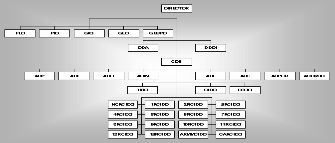 ADI - Intelligence ADO - Operations ADIN - Investigation ADL - Logistics ADC - Comptroller ADPCR - Community Relations ADHRDD - Human Resource |